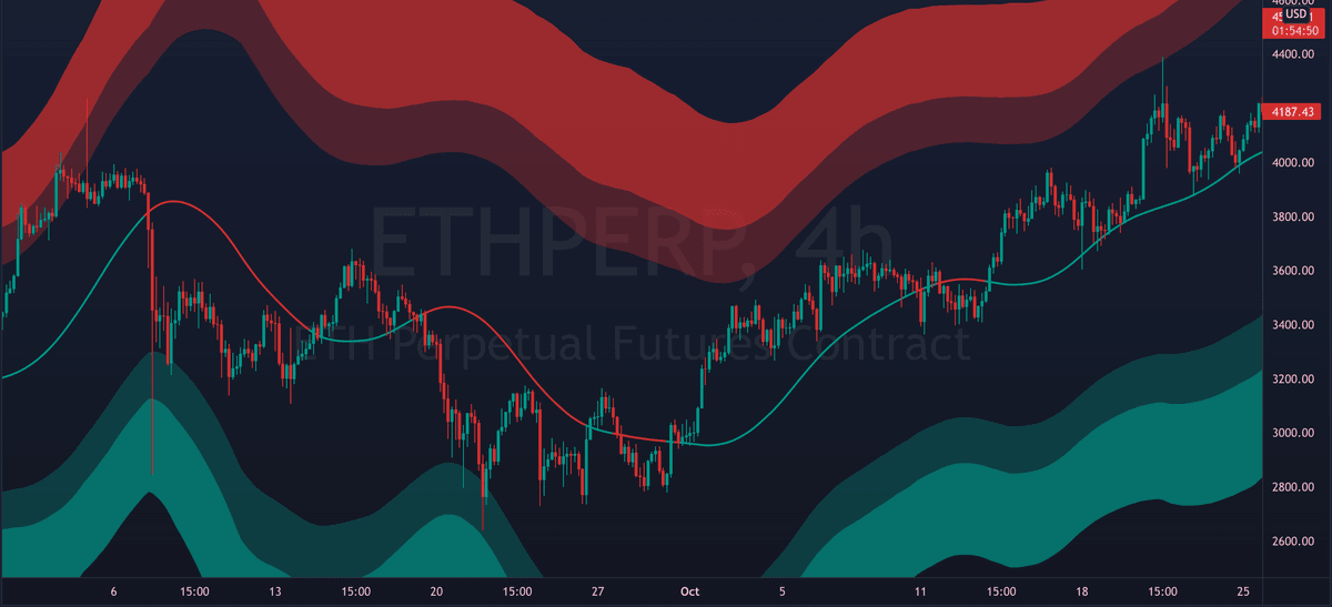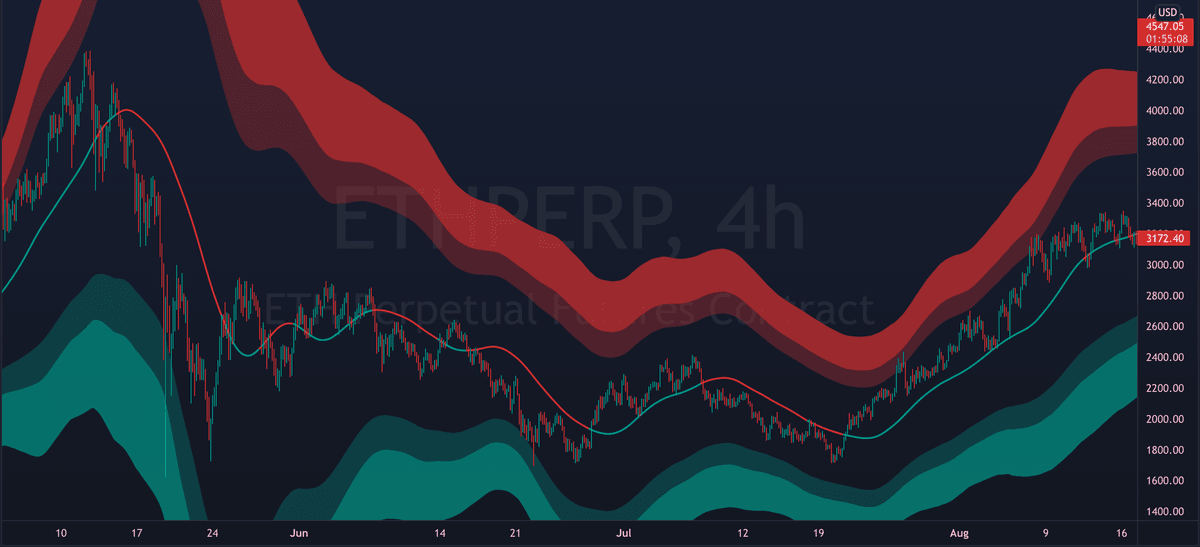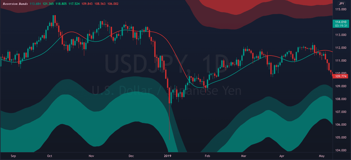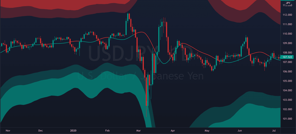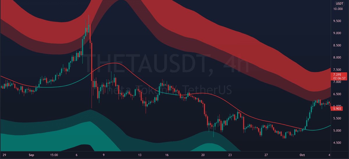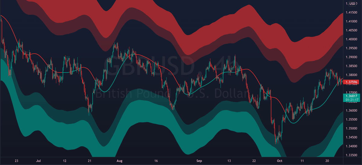 The mid line can also act as dynamic support/resistance. Flipping it as support can signal bullish continuation. While breaking down from it can signal further decline.