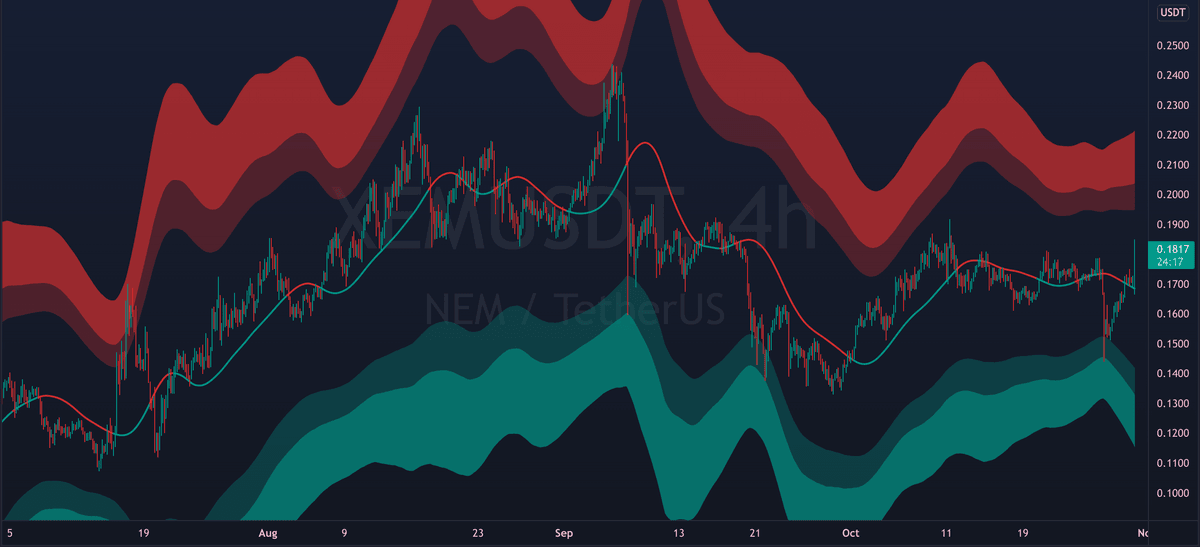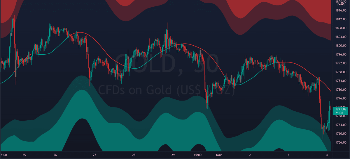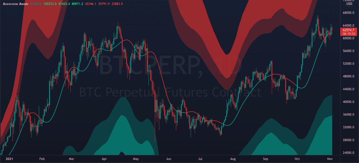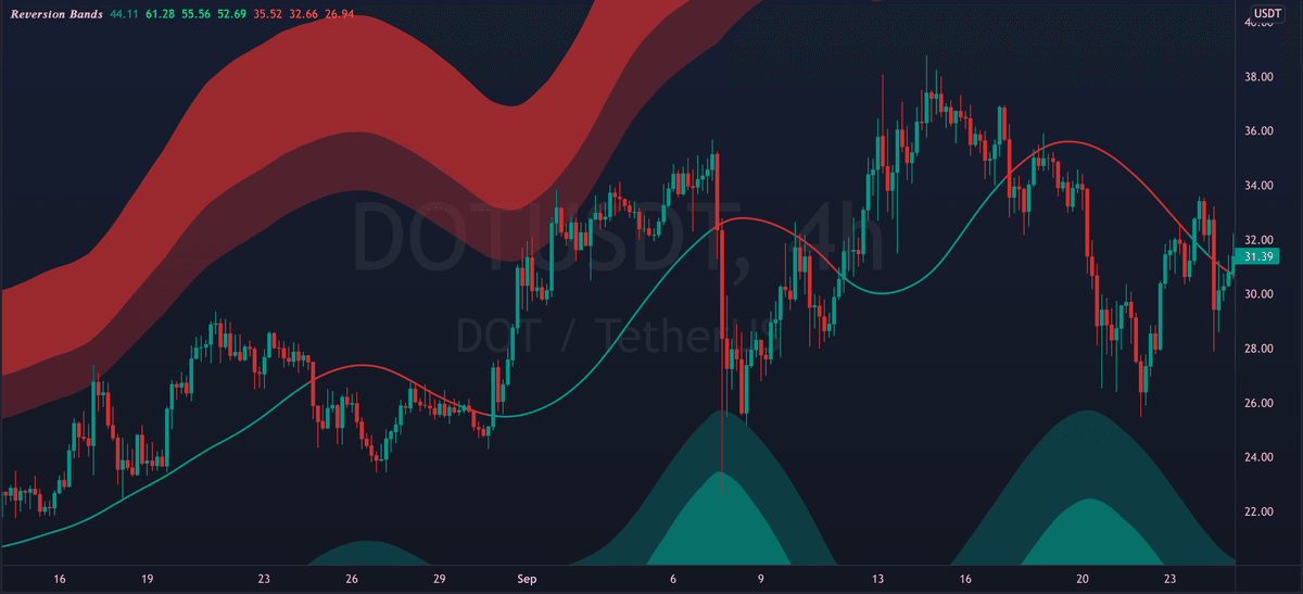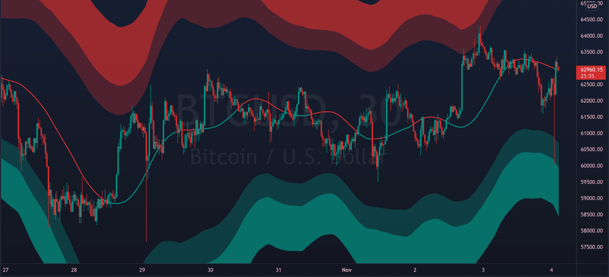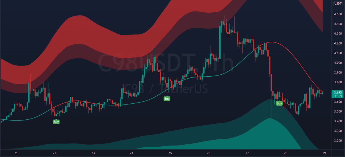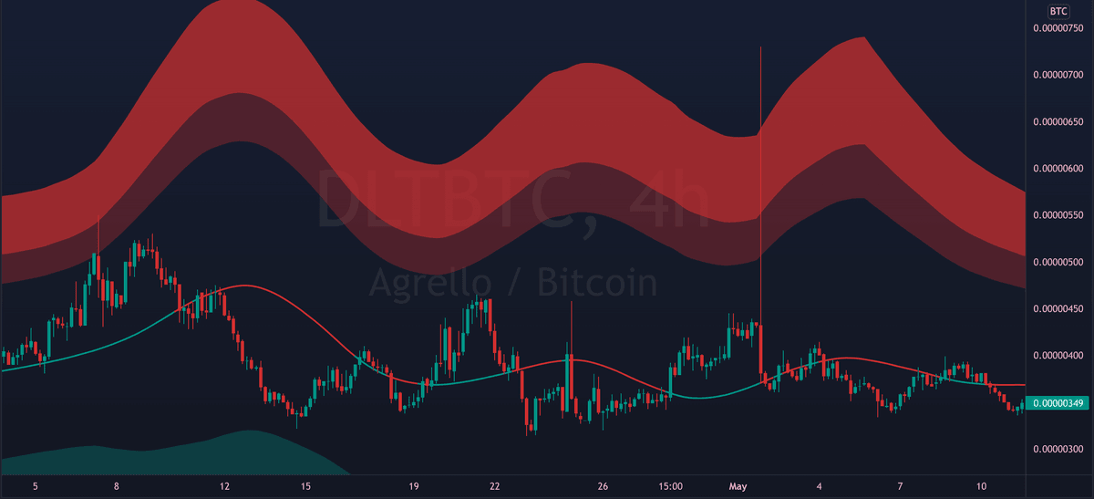 The mid line can also act as dynamic support/resistance. Flipping it as support can signal bullish continuation. While breaking down from it can signal further decline.